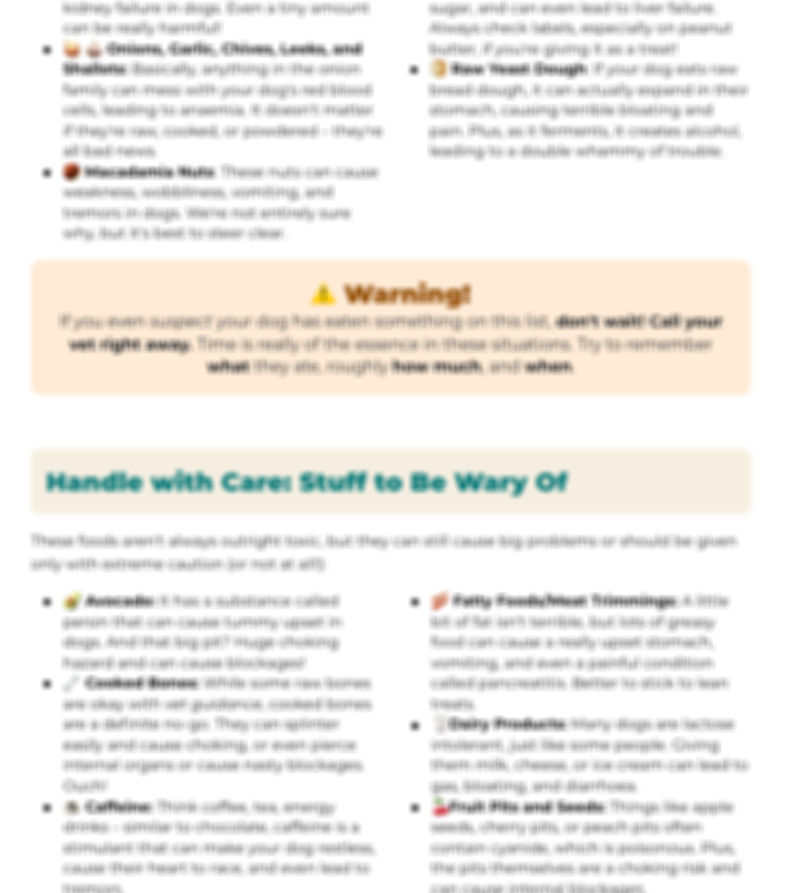 Unsafe Foods for Dogs Printable Guide